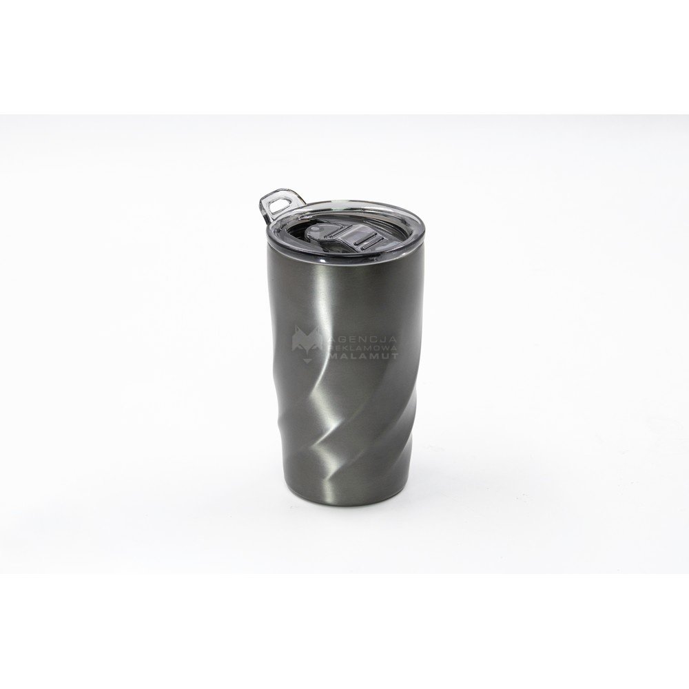 Kubek termiczny 400 ml BrandCharger Vortex Calix, leakproof, zakręcana nakrętka, zaprojektowany żeby przechowywać spienione napoje, nakrętka zawiera pętlę do noszenia, posiada podwójne ścianki ze stali nierdzewnej, co spowalnia oddawanie temperatury na zewnątrz, zachowując funkcje termosu, utrzymuje temperaturę napojów zimnych do 12 godzin, a gorących do 4 godzin, nadaje się do mycia w zmywarce, produkt wykonany ze stali nierdzewnej 304 pochodzącej z recyklingu i tritanu
