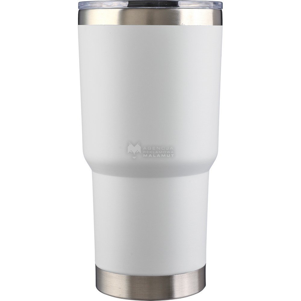 Kubek termiczny 590 ml, posiada podwójne ścianki ze stali nierdzewnej z recyklingu, które spowalniają oddawanie temperatury na zewnątrz, plastikowe wieczko z zamknięciem umożliwiającym obsługę jedną ręką, zapakowany w brązowy kartonik