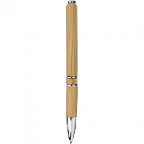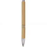 Długopis z chromowanymi detalami, klip ułatwiający zawieszanie na kieszeni albo okładce notatnika, wkład w czarnym kolorze, długość pisania ok. 800 m, produkt wykonany z bambusa, plastiku i metalu