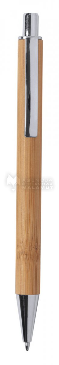 Bambusowy długopis z metalowym klipem i końcówką. Z niebieskim wkładem.