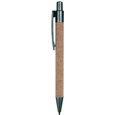 Długopis, korkowy trzon, srebrne plastikowe elementy korpusu