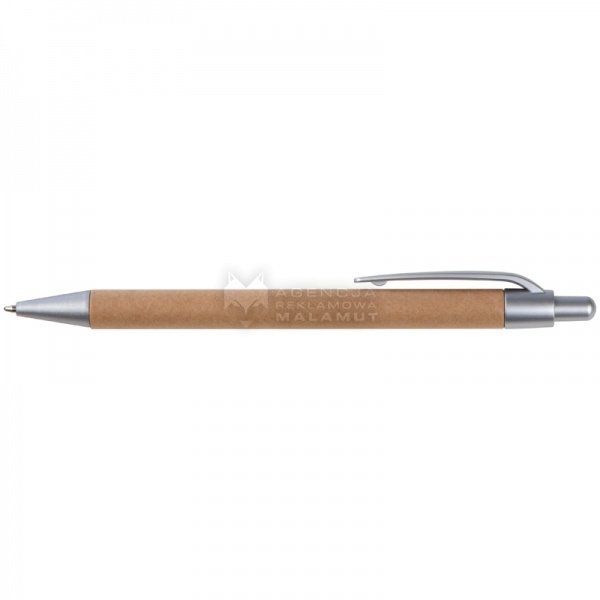 Długopis wykonany z kartonu pochodzącego z recyklingu. Posiada wkład piszący na niebiesko.