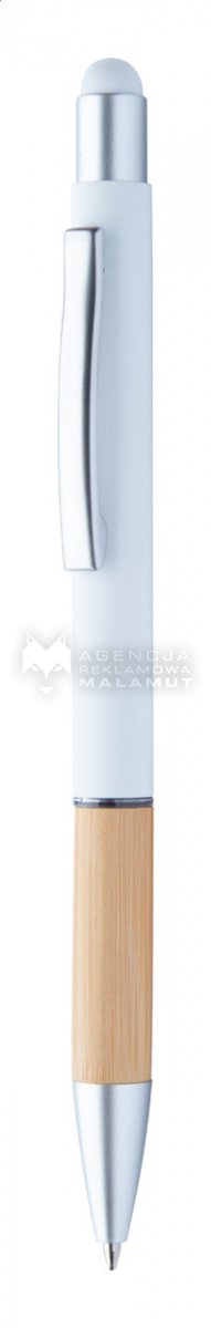 Aluminiowy długopis z końcówką do ekranów dotykowych, z bambusowym uchwytem i matowym wykończeniem. Z niebieskim wkładem. Długopis występuje w wielu wariantach kolorystycznych.