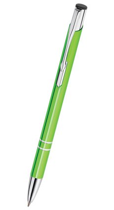 Metalowy długopis w cieńszej wersji, ozdobiony dwoma ringami. Dostępny w wielu kolorach do wyboru. Wkład niebieski.