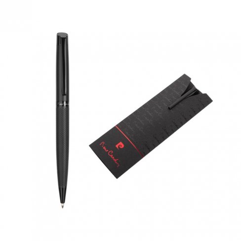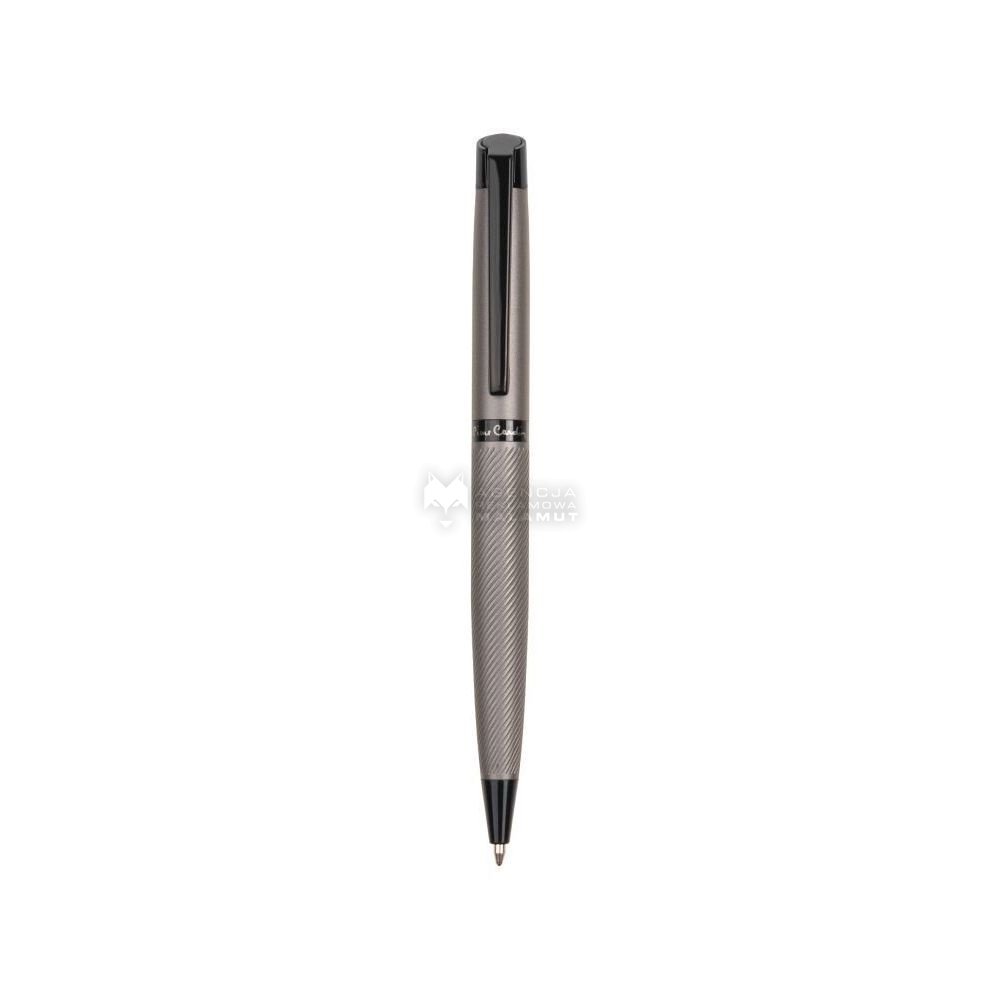 Elegancki metalowy długopis Pierre Cardin. Długopis posiada mechanizm obrotowy, a dolna część korpusu ozdobiona jest strukturalnym wzorem. Posiada wysokiej jakości niebieski wkład z końcówką 1 mm. Zapakowany w luksusową kieszeń, posiada certyfikat autentyczności.