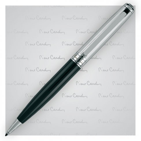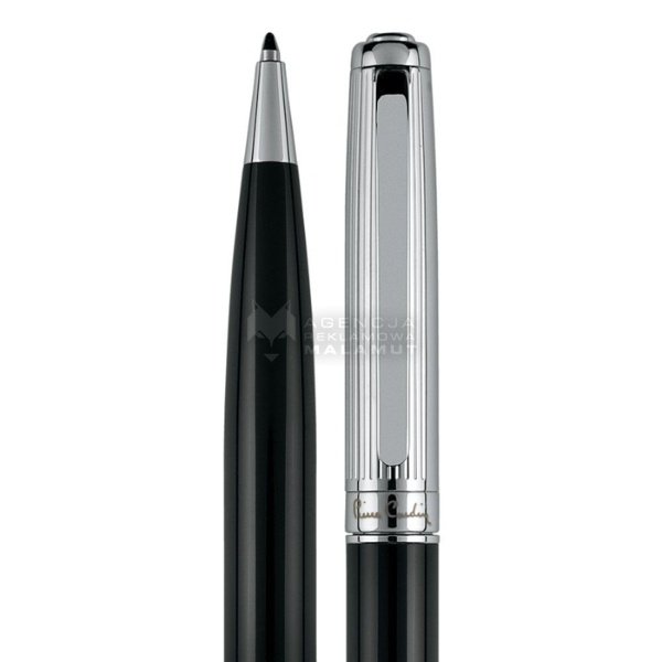 Metalowy długopis z czarnym, lakierowanym korpusem i srebrnymi elementami. Wyposażony w wysokiej jakości niebieski wkład z końcówką 1 mm. W zestawie z wkładem zapasowym piszącym na czarno. Zapakowany w eleganckie pudełko prezentowe z certyfikatem autentyczności Pierre Cardin.