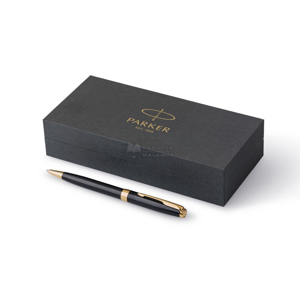 Długopis Parker Sonnet, z mechanizmem obrotowym, wkład w kolorze czarnym, długopis zapakowany w pudełko upominkowe, produkt wykonany z metalu i stali nierdzewnej