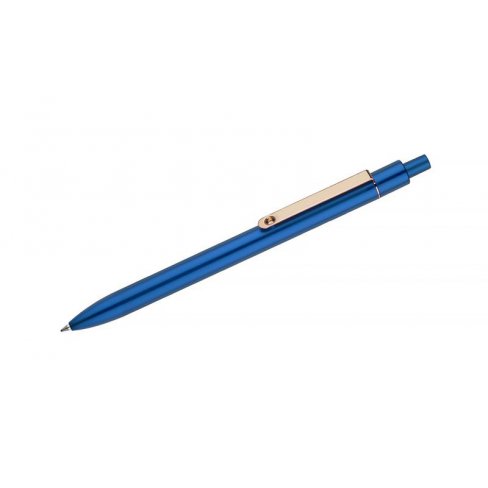 Stylowy długopis aluminiowy z matowym wykończeniem i klipem w kolorze złotym.