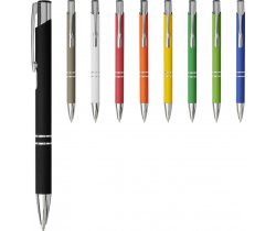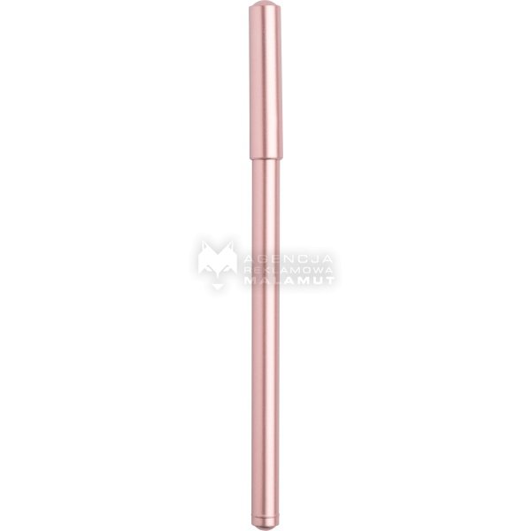 Żelowy długopis z wykończeniem imitującym metal.