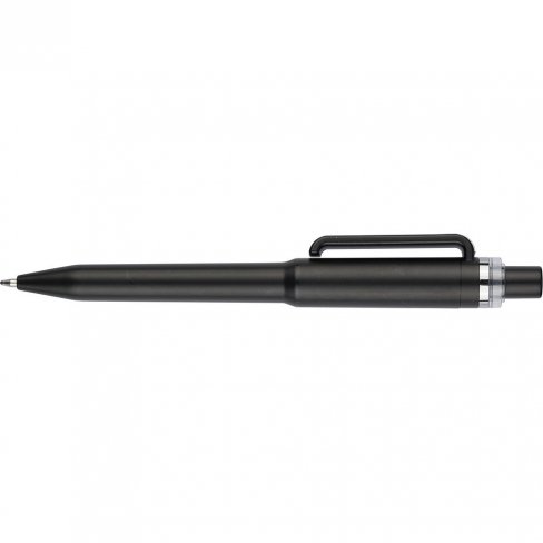 Długopis RABS, w kształcie kubka podróżnego, z metalicznym wykończeniem, wkład w niebieskim kolorze o długości pisania 800 metrów, mechanizm przyciskowy, ikona ABS z recyklingu, plastikowy przycisk, klips oraz chromowany plastikowy pierścień na górze