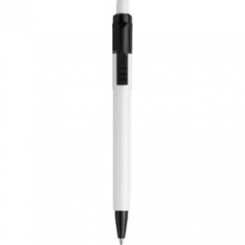Długopis Stilolinea Baron z wkładem jumbo, biały trzon, kolorowy klips, wkład w niebieskim kolorze, zawiera tusz German Dokumental Ink, produkt wykonany z ABS, plastiku i metalu