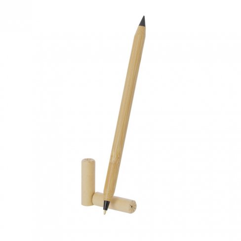 Długopis 2 w 1, "wieczny" ołówek ze specjalną wolnościerającą się końcówką, wkład długopisu w niebieskim kolorze, produkt wykonany z bambusa