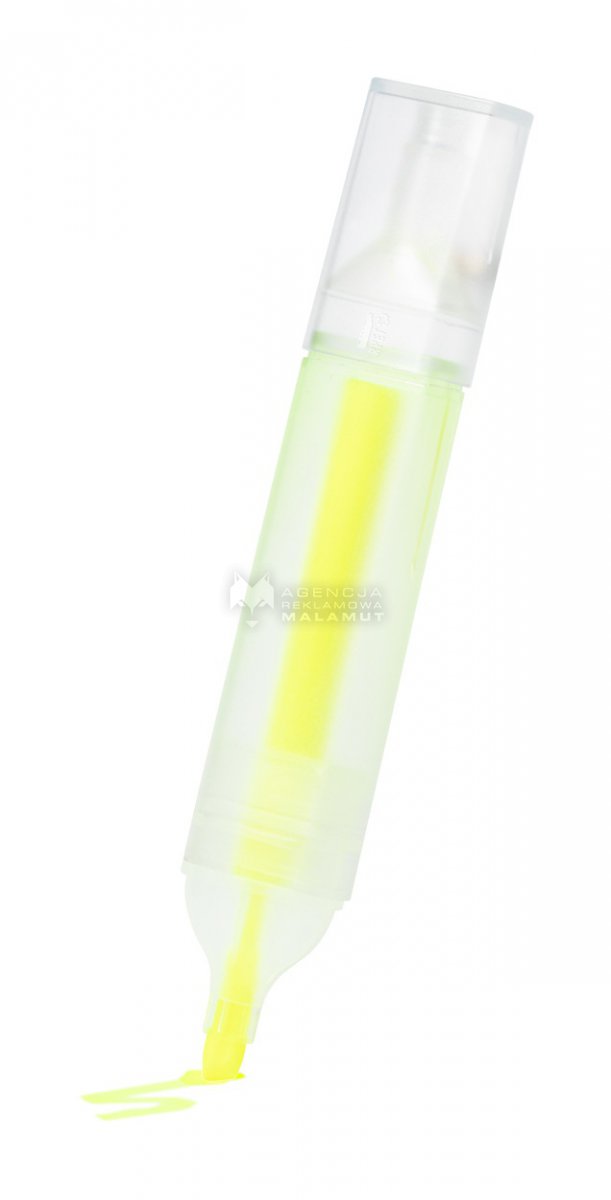 Plastikowy zakreślacz RPET z zatyczką. Z żółtym tuszem.