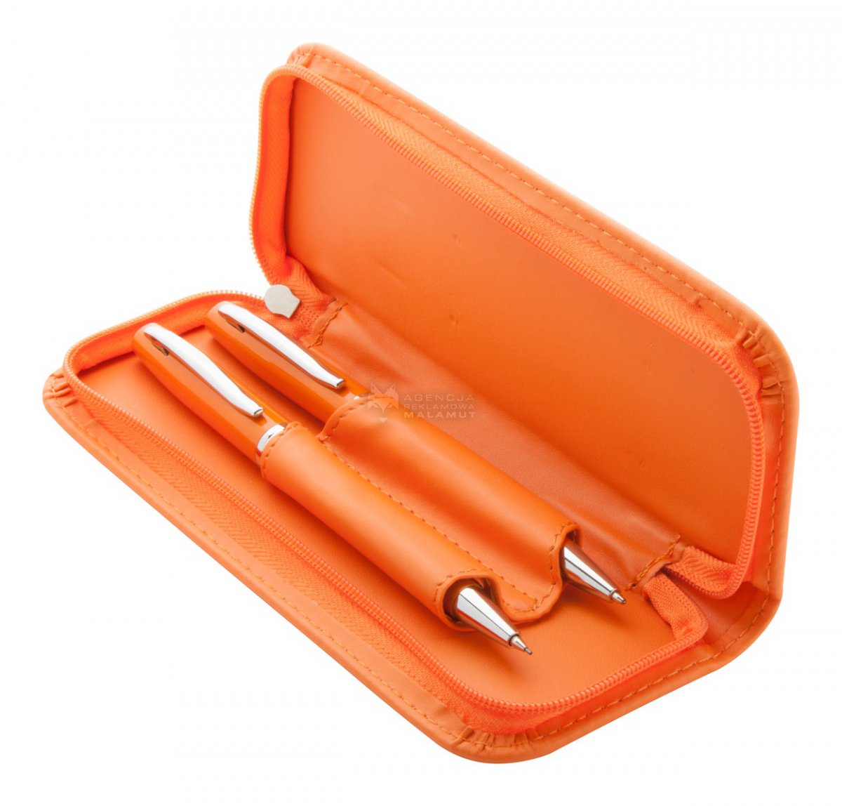 Metalowy długopis i automatyczny ołówek w etui, dostarczany z niebieskim wkładem.