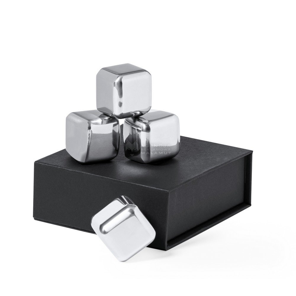 Chłodzące kostki do napojów ze stali nierdzewnej, 4 szt., wielokrotnego użytku, w ozdobnym pudełku