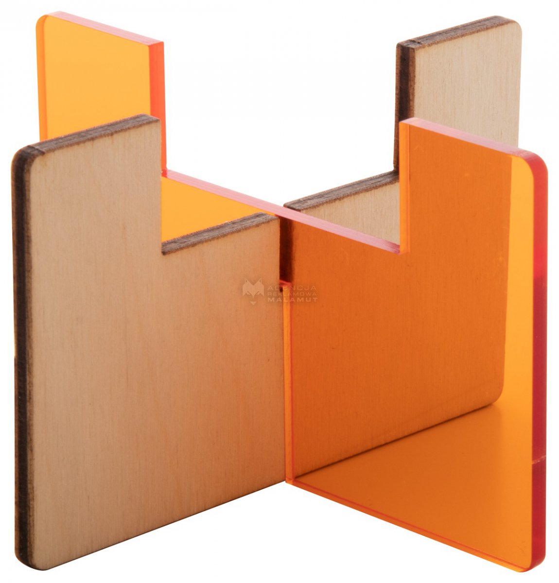 Świecznik ze sklejki brzozowej i przezroczystego akrylu. Dostarczany na płasko, bez świecy.
