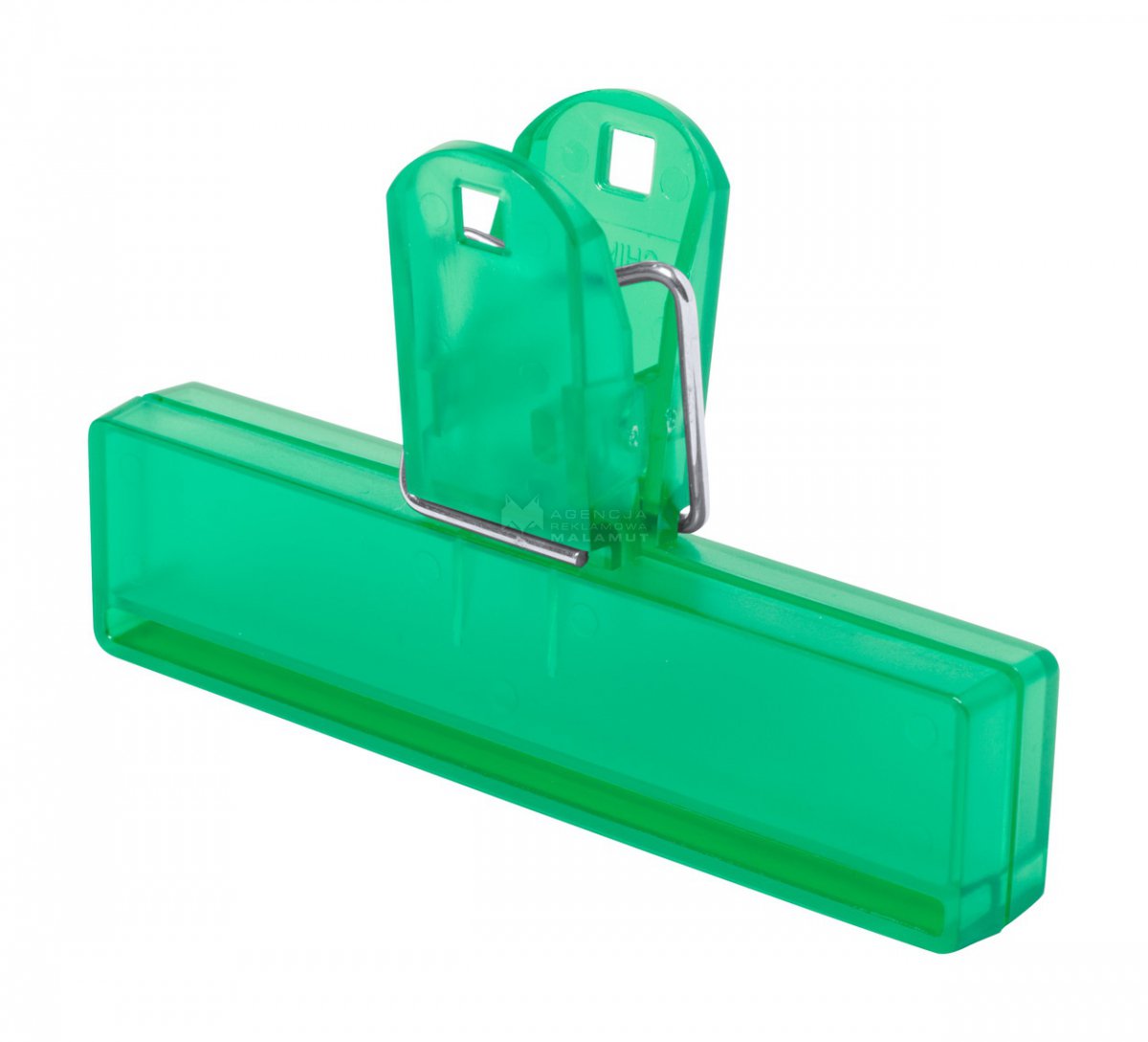 Przezroczysty klips do torebek z tworzywa sztucznego.