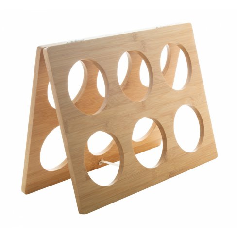 Składany, bambusowy stojak na wino na 6 butelek. Brak w komplecie butelek wina.