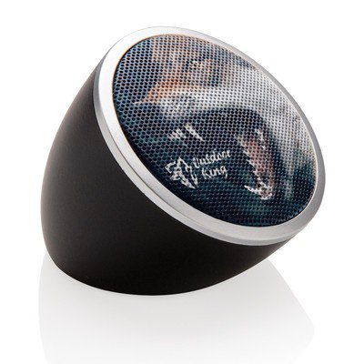Głośnik bezprzewodowy 3W, BT 5.0, wykonany z ABS, metalowa maskownica, funkcja odbierania połączeń, wbudowany mikrofon, akumulator o pojemności 300 mAh umożliwia odtwarzanie muzyki do 3 godzin, ponowne naładowanie w 1 godzinę, zasięg do 10 m