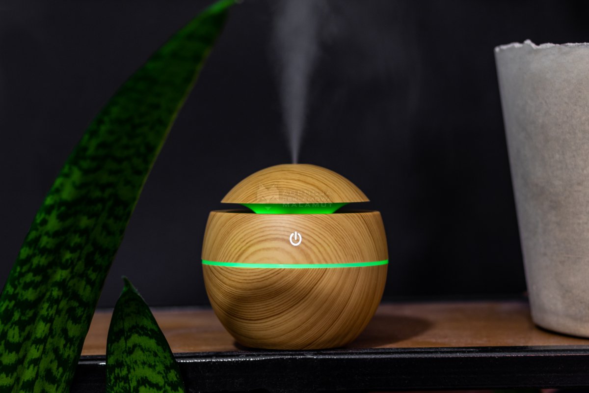 Nawilżacz powietrza wyposażony w diodę LED ze zmieniającymi się kolorami. Nawilżacz ma pojemność 130 ml, w zestawie z kablem USB.