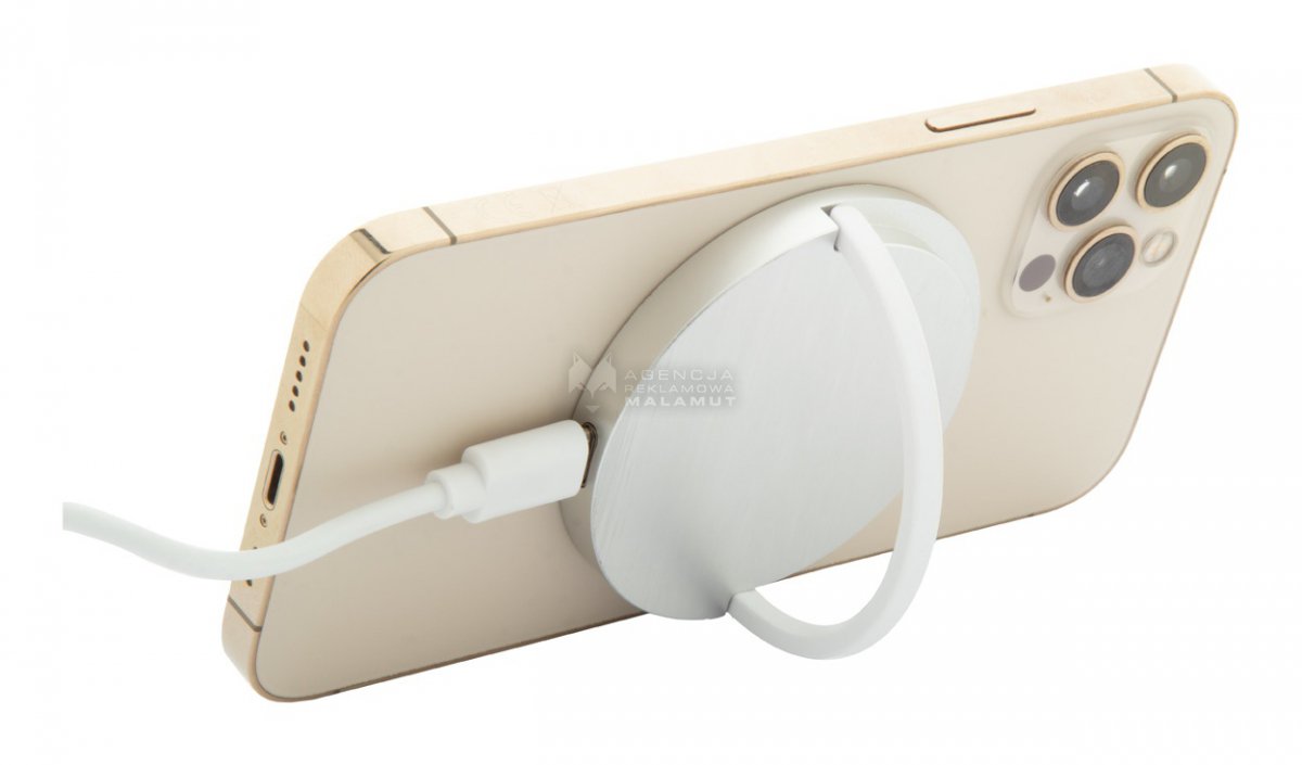Magnetyczna, szybka ładowarka indukcyjna (15 W) z pierścieniem na telefon komórkowy z aluminium pochodzącego z recyklingu i obudową z tworzywa ABS pochodzącego z recyklingu. Kompatybilna z iPhonem® 12 lub nowszym. W zestawie kabel do ładowania USB-C.