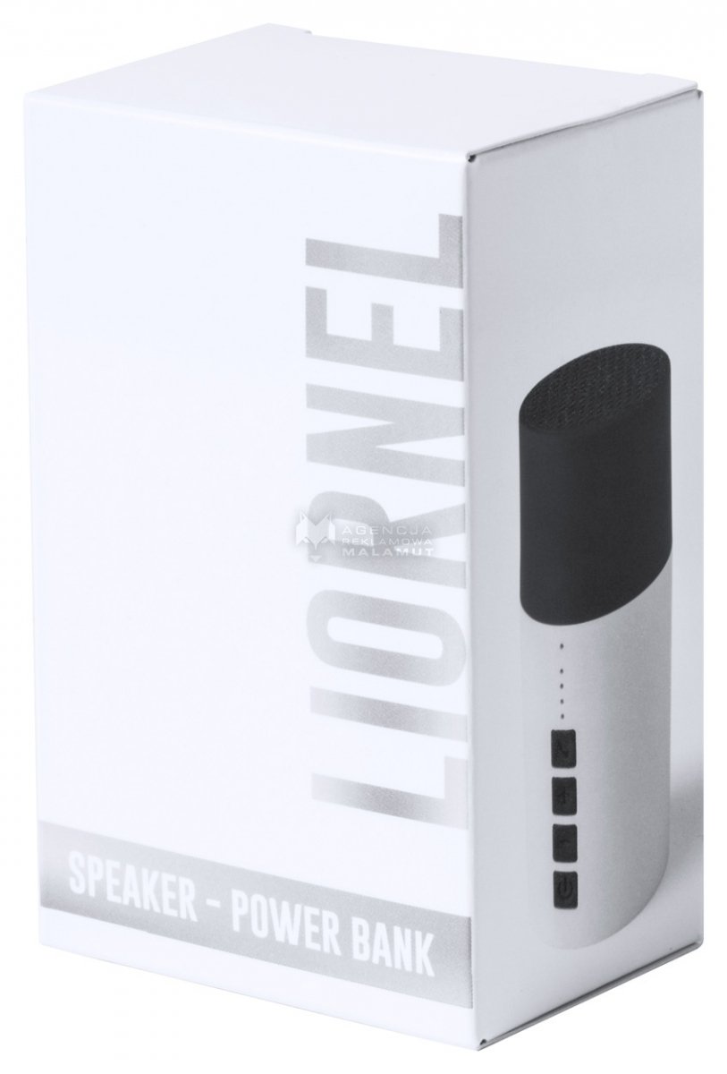 Głośnik bluetooth z 4200 mAh power bank, funkcja handsfree, dostrczany z kablem USB.