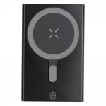 Magnetyczny bezprzewodowy power bank 5000 mAh, ładowarka bezprzewodowa 15W, wejście/wyjście USB-C 5-9V/1-1.67A, działa z urządzeniami posiadającymi możliwość ładowania indukcyjnego, funkcja magnetyczna działa tylko z kompatybilnymi urządzeniami, 4 diody wskazujące poziom naładowania, kabel UBS-C w komplecie, produkt wykonany z aluminium z recyklingu