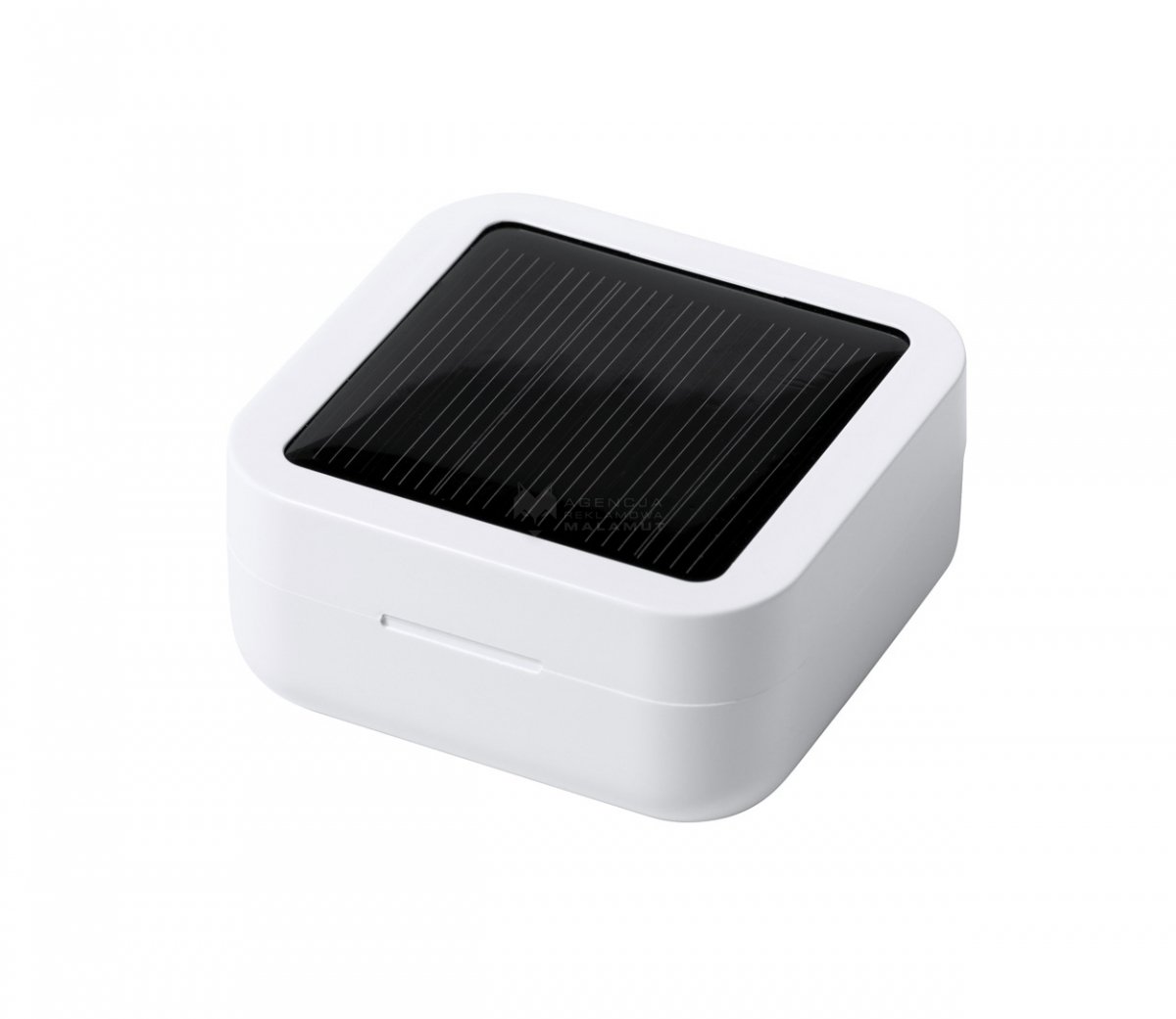 Bezprzewodowe słuchawki bluetooth z funkcją rozmów w plastikowym etui z wbudowaną ładowarką słoneczną. W zestawie kabel USB.