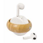 Bezprzewodowe słuchawki Bluetooth z funkcją rozmów głosowych, w ekologicznej obudowie z plastiku ze słomy pszenicznej i bambusa. W zestawie kabel do ładowania USB.