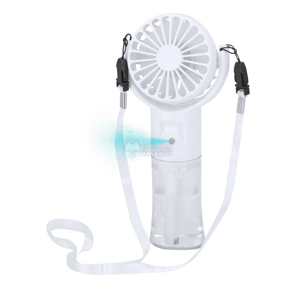 Wentylator kieszonkowy ze spryskiwaczem 20 ml, 4 tryby prędkości, bateria 800 mAh, posiada smycz w komplecie, kabel USB-C w komplecie, produkt wykonany z ABS