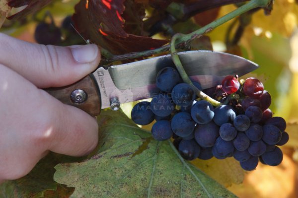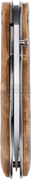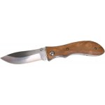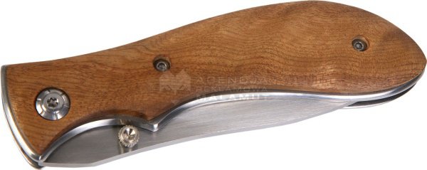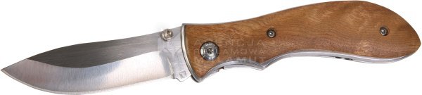 Nóż kieszonkowy z drewnianą rękojeścią. Materiał: metal, drewno.