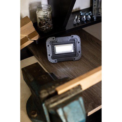 Lampka warsztatowa COB, 10W, 500 lumenów, 3 tryby oświetlenia (silny, normalny, światło migające), bateria 2000 mAh, wejście micro USB, wyjście USB, 4 diody wskazujące poziom naładowania, 4 magnesy z tyłu, rączka z możliwością regulacji pozycji, ładowana przez USB, kabel micro USB w komplecie
