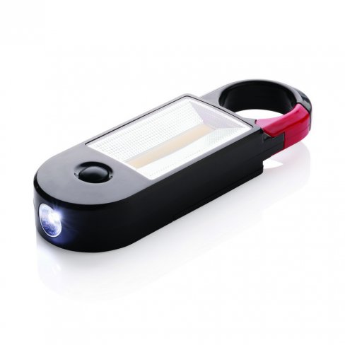 Lampka warsztatowa, latarka, dwa rodzaje światła: LED z przodu oraz bardzo jasne światło COB, posiada magnes oraz haczyk do powieszenia w dowolnym miejscu, baterie w komplecie, ślad węglowy produktu: 0,72 kg CO2
