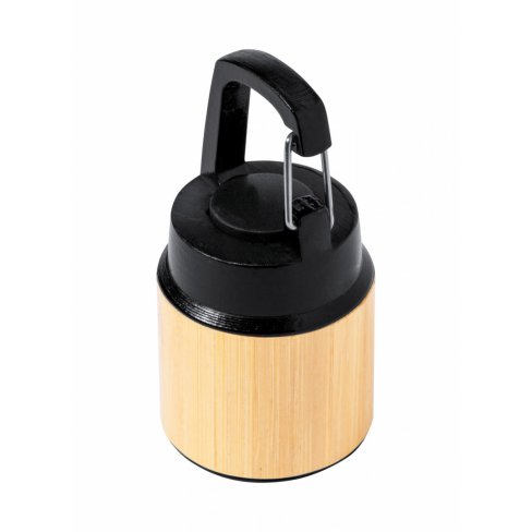 Plastikowa latarka ABS pokryta bambusem z diodą COB i karabińczykiem. W zestawie baterie guzikowe.