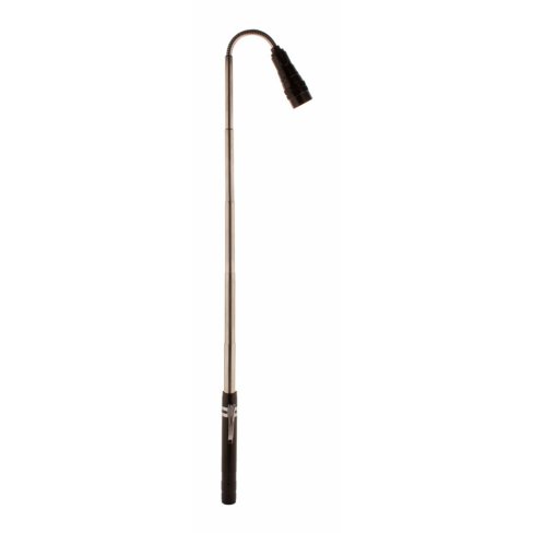 Aluminiowa latarka na 3 diody LED z wysuwaną i elastyczną głowicą, magnesem na górze i metalowym klipsem bocznym. Zawiera baterie guzikowe. Maks. długość: 57 cm.