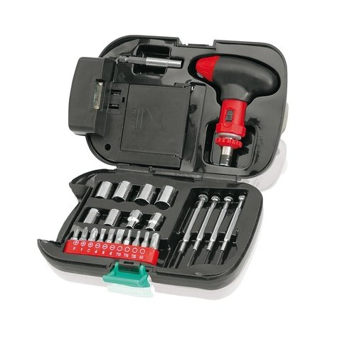 Zestaw narzędzi, latarka 1 LED, 24 elementy w czarnej skrzynce