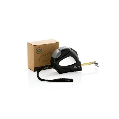 Miara 3 m, taśma o szerokości 16 mm z haczykiem i magnesami, przycisk blokady, wykonana z ABS pochodzącego z recyklingu z certyfikatem RCS (Recycled Claim Standard) który gwarantuje, że wykorzystane materiały pochodzą z recyklingu, całkowita zawartość materiału z recyklingu obliczona w oparciu o wagę całkowitą przedmiotu: 18%, uchwyt z TPR, w pudełku z papieru kraftowego z certyfikatem FSC® mix (Forest Stewardship Council), ślad węglowy produktu: 0,57 kg CO2