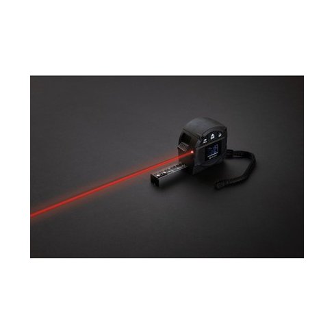Miara 5 m, przycisk blokady, dalmierz laserowy 30m, wbudowany ekran LCD, czarna, dwustronna taśma wykonana z trwałego włókna węglowego, wbudowany akumulator, w pudełku podarunkowym, ślad węglowy produktu: 2,14 kg CO2