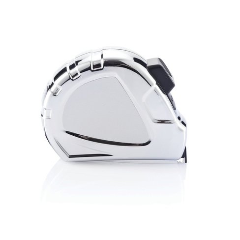 Miara 5 m, funkcja auto stop, żółta, matowa taśma o szerokości 19 mm, obudowa wykonana z chromowanego ABS, klip ze stali nierdzewnej, ślad węglowy produktu: 1,25 kg CO2