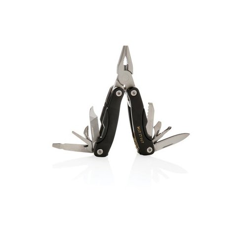 Mini narzędzie wielofunkcyjne, wykonane ze stali nierdzewnej, uchwyt z anodyzowanego aluminium, 13 funkcji, czarny pokrowiec w komplecie