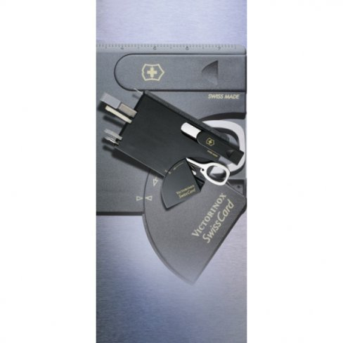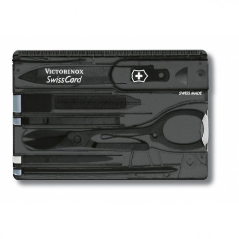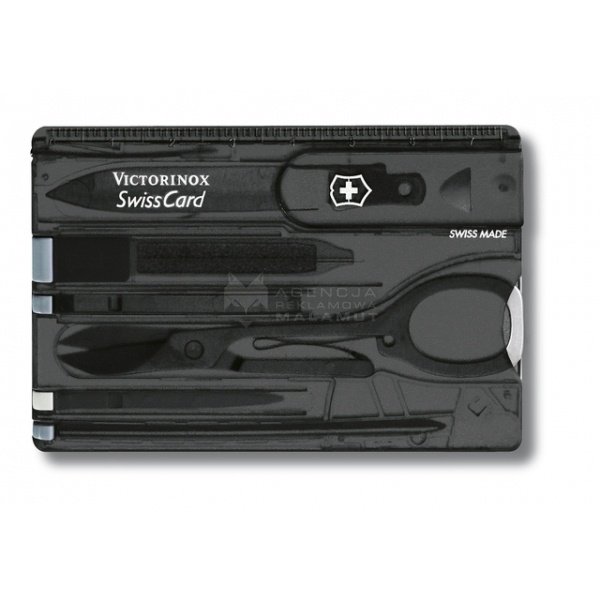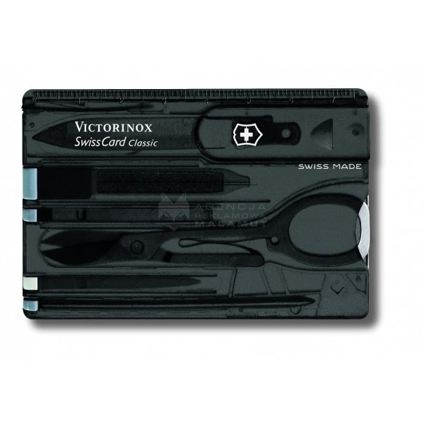 1. Nóż (również do otwierania listów) 2. Pilnik do paznokci ze 3. - Śrubokrętem 4. Nożyczki 5. Pęseta 6. Wykałaczka 7. Długopis 8. Szpilka 9. Miarka z podziałką centymetrową 10. Miarka z podziałką calową
