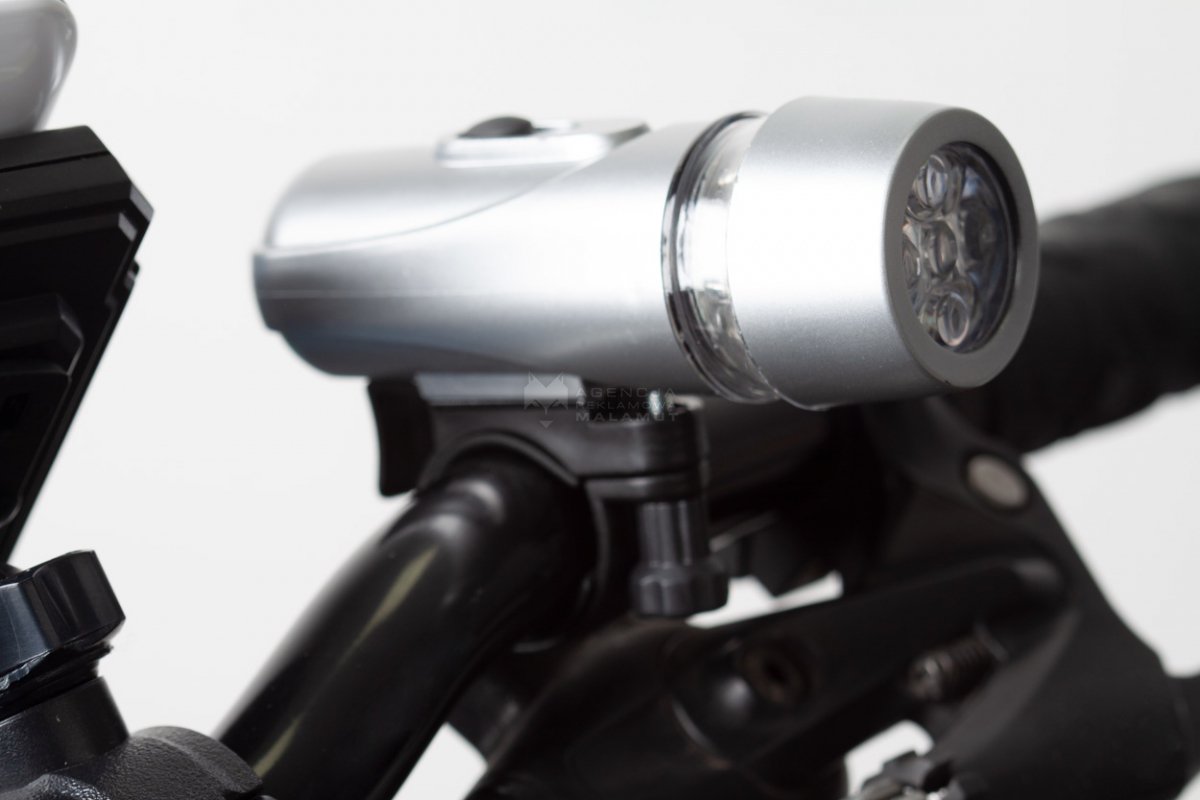 Zestaw lampek do roweru z 5 ledami. Zestaw nie zawiera baterii. Nie oferowany w następujących krajach: DE, AT, CH.