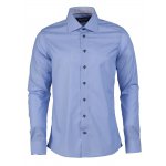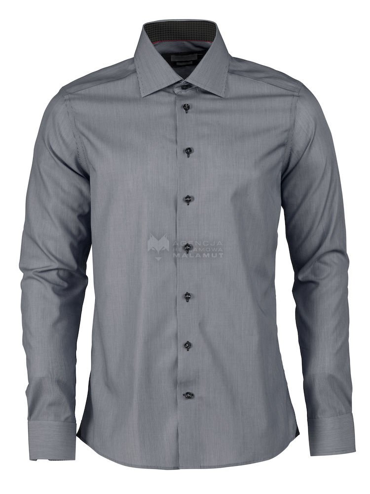 Cienkie białe paski na niebieskim i antracytowym tle to nowa definicja dobrego smaku kiedy chodzi o koszule w pasy. Doskonale komponuje się z większością kolorów i krojów, dodając biurowym stylizacjom eleganckiego sznytu urozmaicając jednocześnie klasycznie biało-niebieską gamę businessowych kolorów. Koszula jest wykonana z przyjemnego w dotyku materiału o gęstym splocie (mniej transparentna). Posiada zakładkę na plecach, wzmocniony kołnierz i listwę z guzikami oraz poszetkę w zestawie.