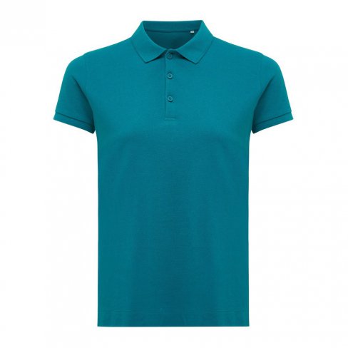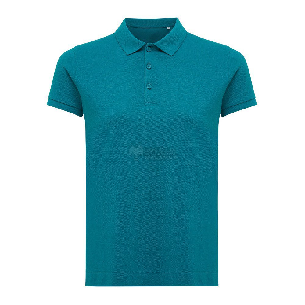 Koszulka polo, damska, zapięcie na 3 guziki, krój medium, splot Pique, krótkie rękawy, wykonana w 50% z bawełny z recyklingu i w 50% z bawełny organicznej o gramaturze 220 g/m2, bez dodatku poliestru, posiada wbudowany znacznik AWARE™, który potwierdza wykorzystanie materiałów z recyklingu, posiada kod QR na metce, który prowadzi do cyfrowego paszportu produktu, 2% wpływów z każdego sprzedanego produktu jest przekazywane na rzecz Water.org