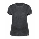 Damska koszulka z okrągłym dekoltem, wykonana z dzianiny single jersey składającej się w 60% z bawełny z recyklingu i w 40% z poliestru RPET, o gramaturze 150 g/m2.