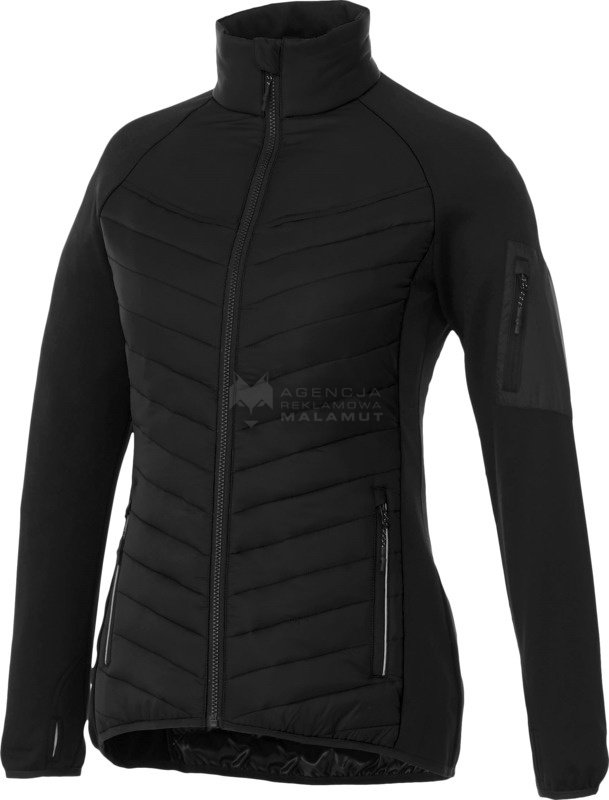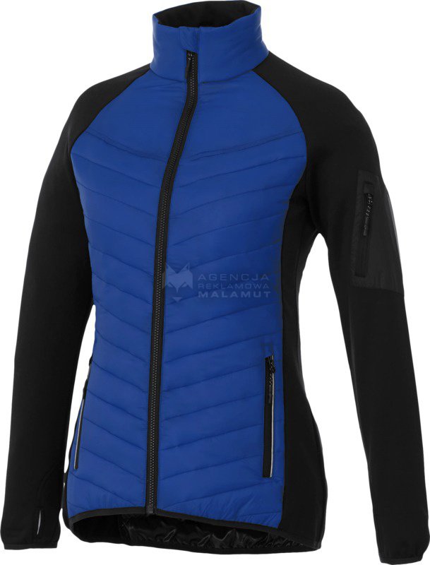 Zakładka sztormowa z blokadą chroniącą przed przycięciem podbróbka. Port wyprowadzający media z miejscem poprowadzenia kabla. Przedłużany tył. Szwy kształtujące sylwetkę oraz zwężana talia . Elastyczne sciągacze w kontrastowym kolorze. Ozdobna lamówka . Centralnie położony kontrastowy zamek błyskawiczny . Antypoślizgowe końcówki suwaków. Pętelka na wieszak. Metka wdrukowana transferem dla lepszego komfortu. Tkanina Dull cire 380T z wykończeniem odbijającym wodę i zapobiagającym wydostawaniu się puchu100% Nylon, 38 g/m2, Contrast fabric, Dzianina Interlock94% Poliester, 6% Elastan, 245 g/m2, Padding/filling, fake down insulation100% Poliester.