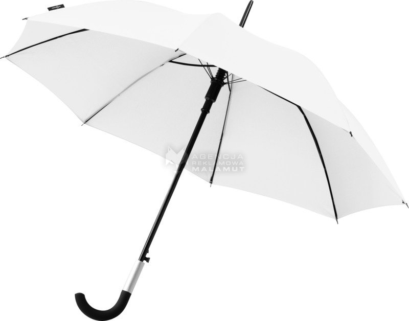 Objęty wzorem zastrzeżonym parasol z funkcją automatycznego otwierania. Metalowy trzpień i szkielet. Uchwyt pokryty gumą z aluminiowym detalem, specjalnie zaprojektowana rączka, którą łatwo powiesić na stole. W zestawie pokrowiec tego samego koloru.
