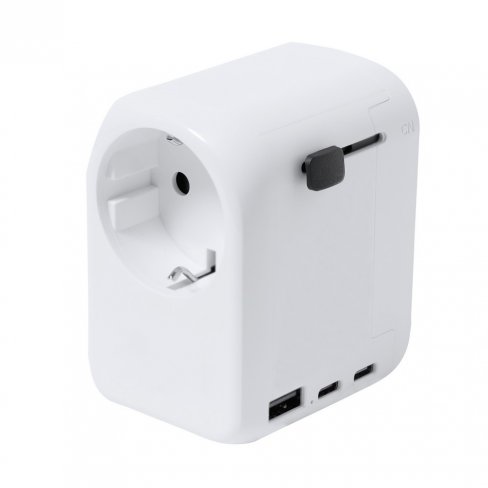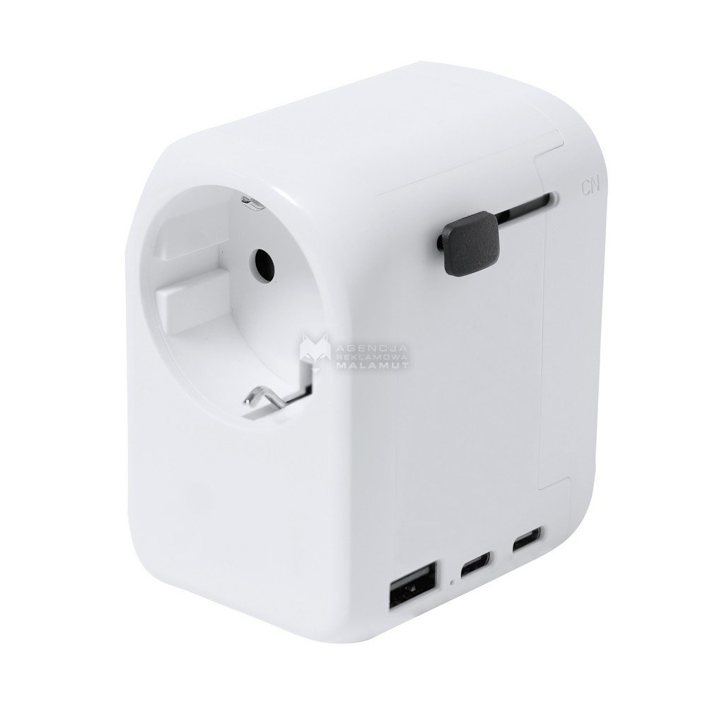 Adapter podróżny z wyjściem USB i USB-C,wtyczki z: USA, Europy, Azji, UK i Australii, produkt wykonany z ABS
