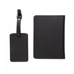 Zestaw podróżny, zawieszka bagażowa, etui na paszport, wiele kieszonek wewnątrz, wykonane z PU z recyklingu z certyfikatem GRS, całkowita zawartość materiałów z recyklingu obliczona na podstawie wagi całkowitej przedmiotu: 70%, w pudełku upominkowym z certyfikatem FSC®, ślad węglowy produktu: 0,36 kg CO2