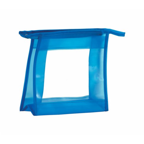 Kosmetyczka zapinana na zamek błyskawiczny z przezroczystym okienkiem. Materiał: PVC.